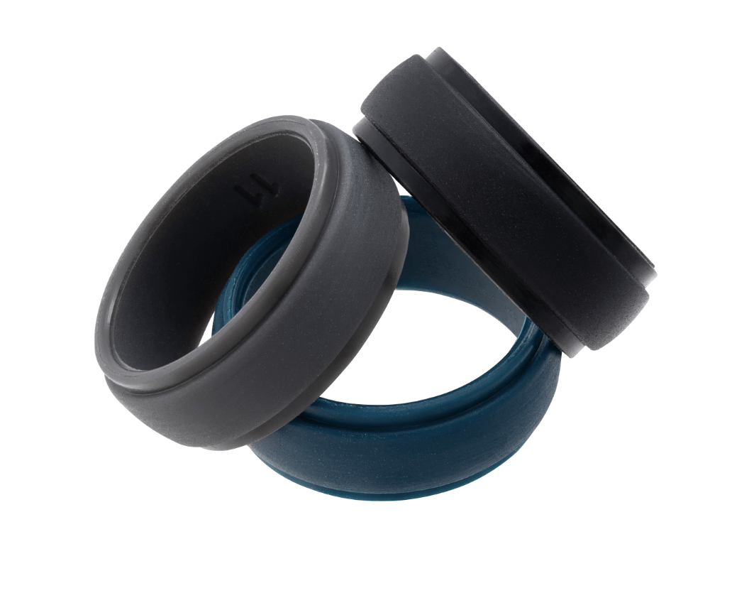 Set of 3 Silicone Men’s Wedding Bands in Black, Gray, and Blue Colors